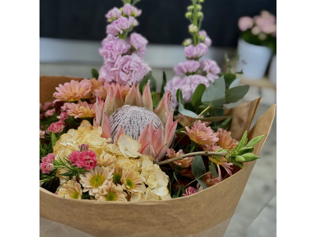 Květina v pastelových tonech navodí pocit zemitosti a klidu. Květina je tvořena z pastelových květů dle aktuálních skladových zásob.