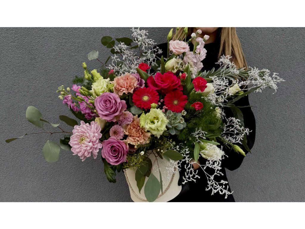 Pestrý flower box- Předtím než květinu dáte do vázy je důležité obnovit řez stonků. U flower boxu tohle neplatí, díky florexové výplni boxu stačí občasně dolévat vodu. Box je tvořen z pestře barevných květin dle aktuálních skladových zásob.